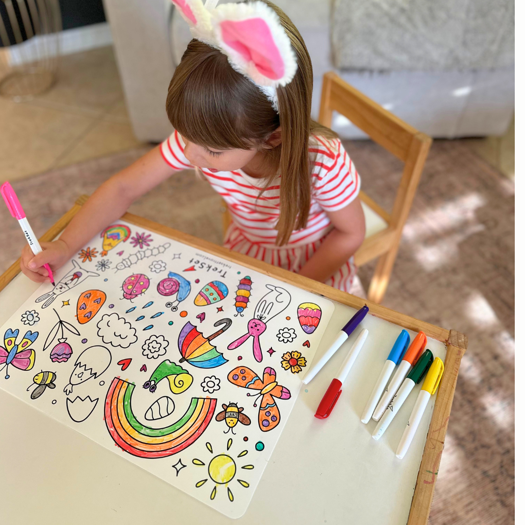 Goodbye endless bulky coloring books and single use coloring pages... With our Reusable Coloring Mat, simply color, wipe and repeat again and again